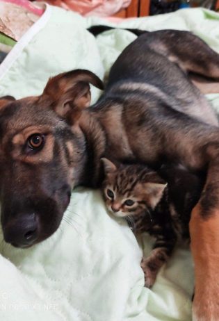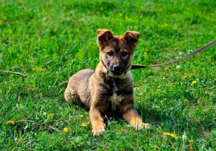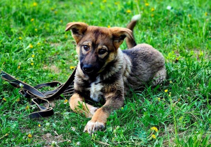 На территории нашего предприятия появилась беременная собака, которая родила четверых щенят в феврале.